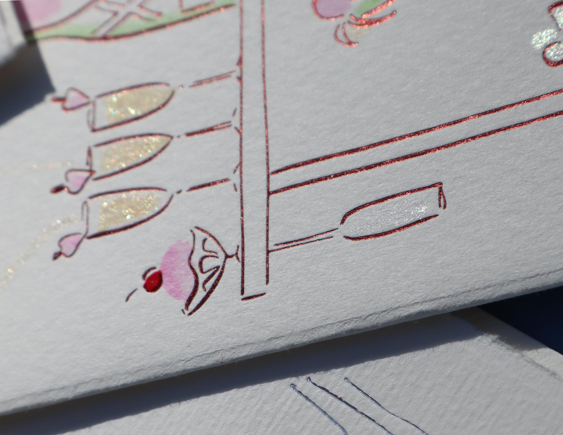 Letterpress printed with Chocolate Brown foil onto a beautiful Deckle edge cream Italian watercolour paper that has been produced in Italy since the early 1900s. Paired with a matching cream envelope.