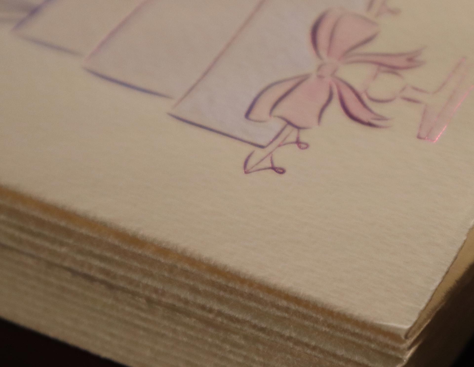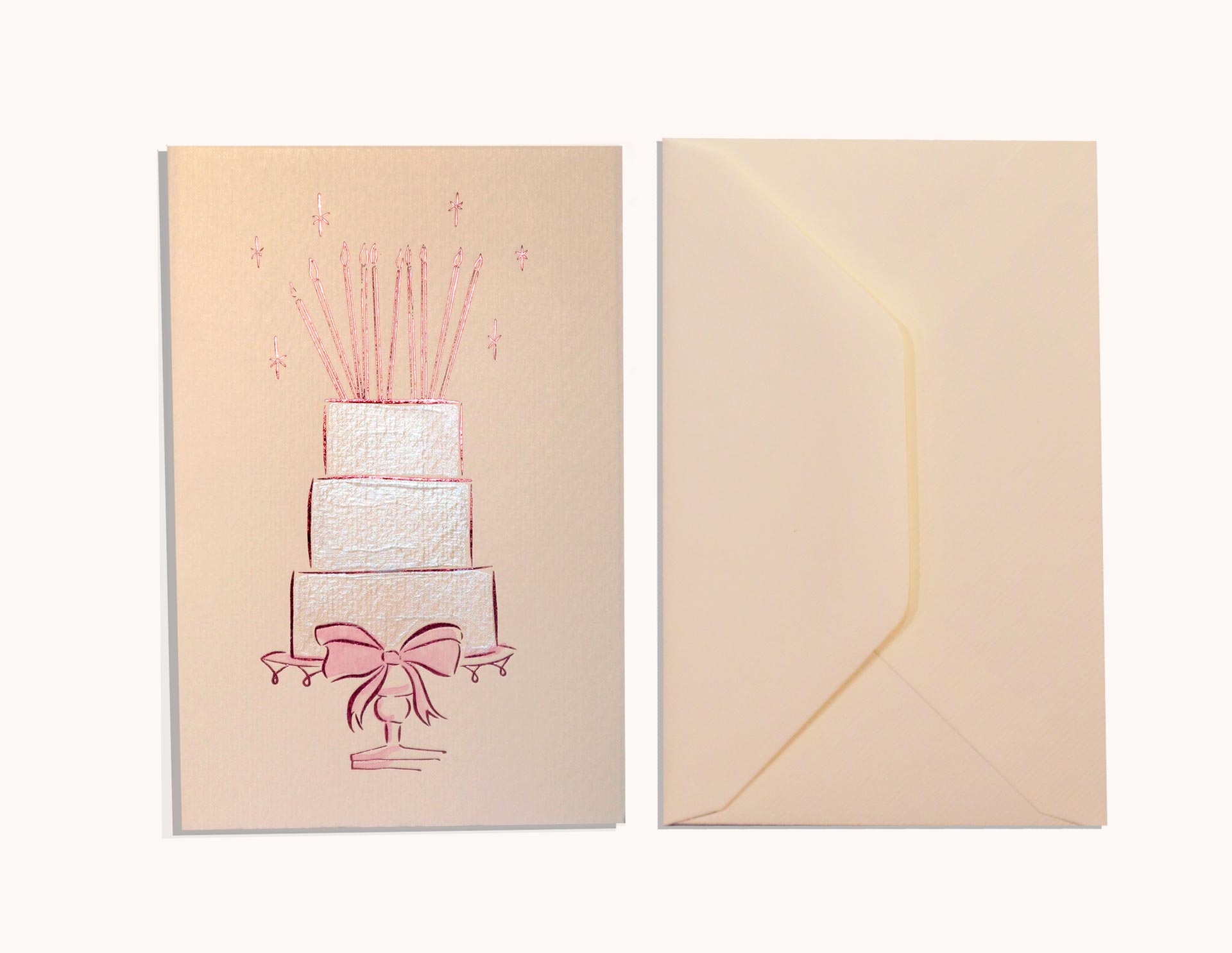 Letterpress printed with pink foils onto a beautiful Deckle edge cream Italian watercolour paper that has been produced in Italy since the early 1900s. Paired with a matching cream envelope.