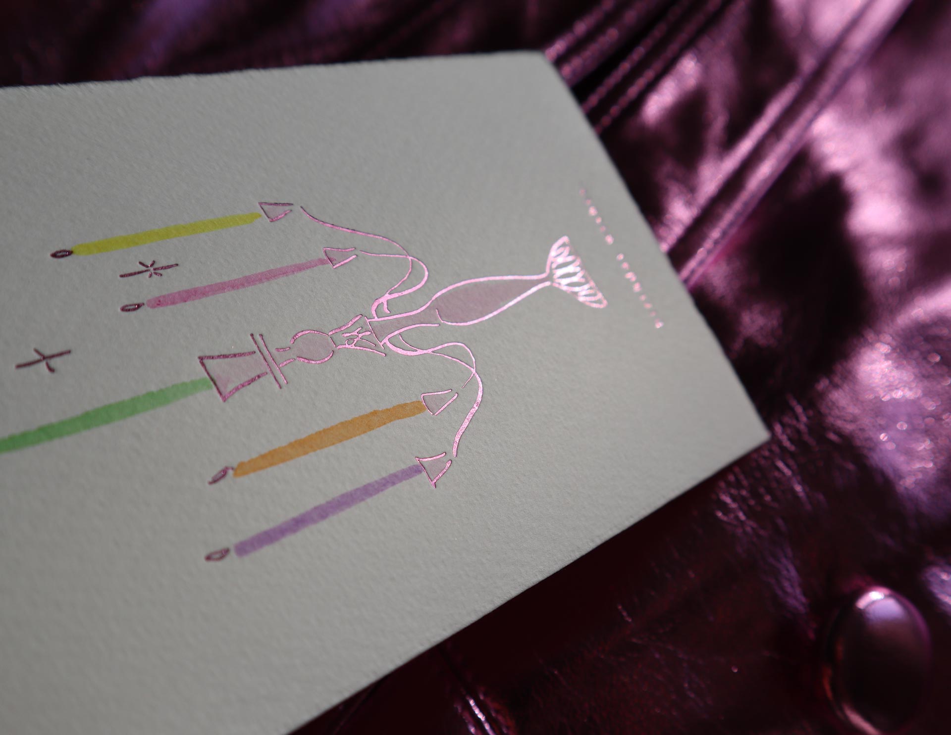 Letterpress printed with pink foil onto a beautiful Deckle edge cream Italian watercolour paper that has been produced in Italy since the early 1900s. Paired with a matching cream envelope.