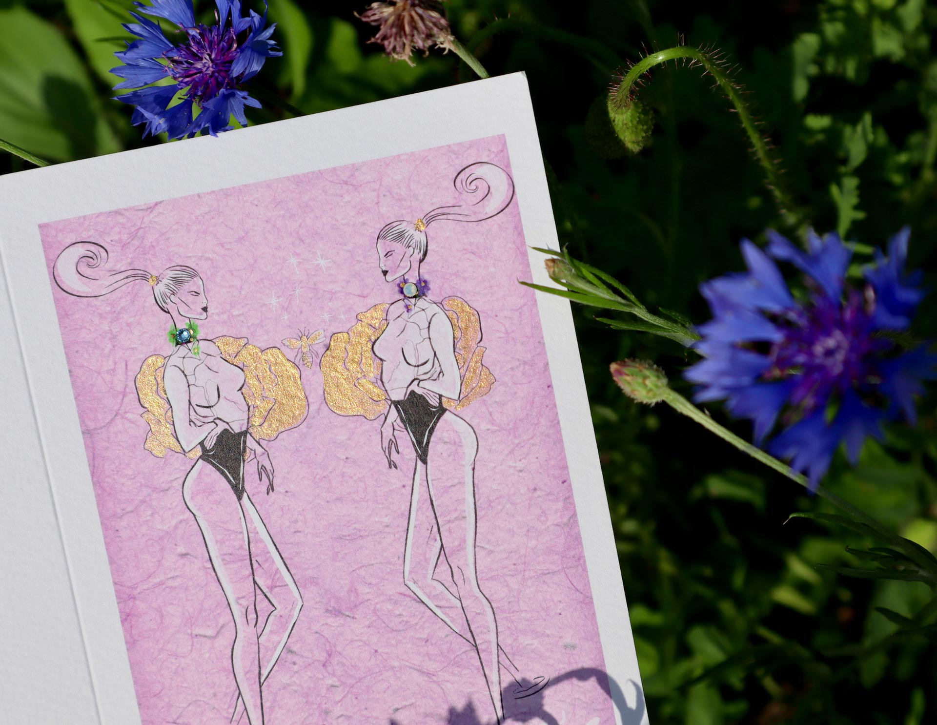 Available as a single card or as a set of 5…Advantageous to have at home for everyday correspondence and suits any occasion such as a birthday, a thank you or to let your most stylish friend know you are thinking of them.
